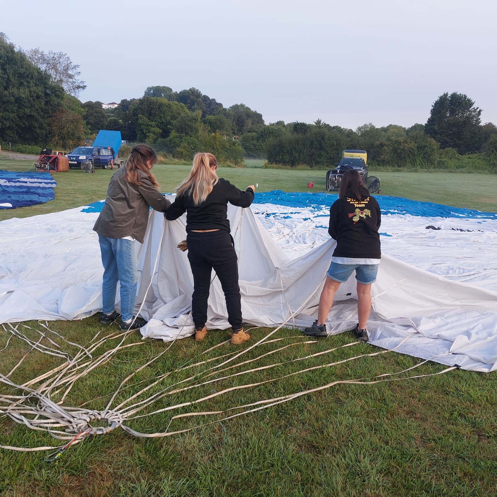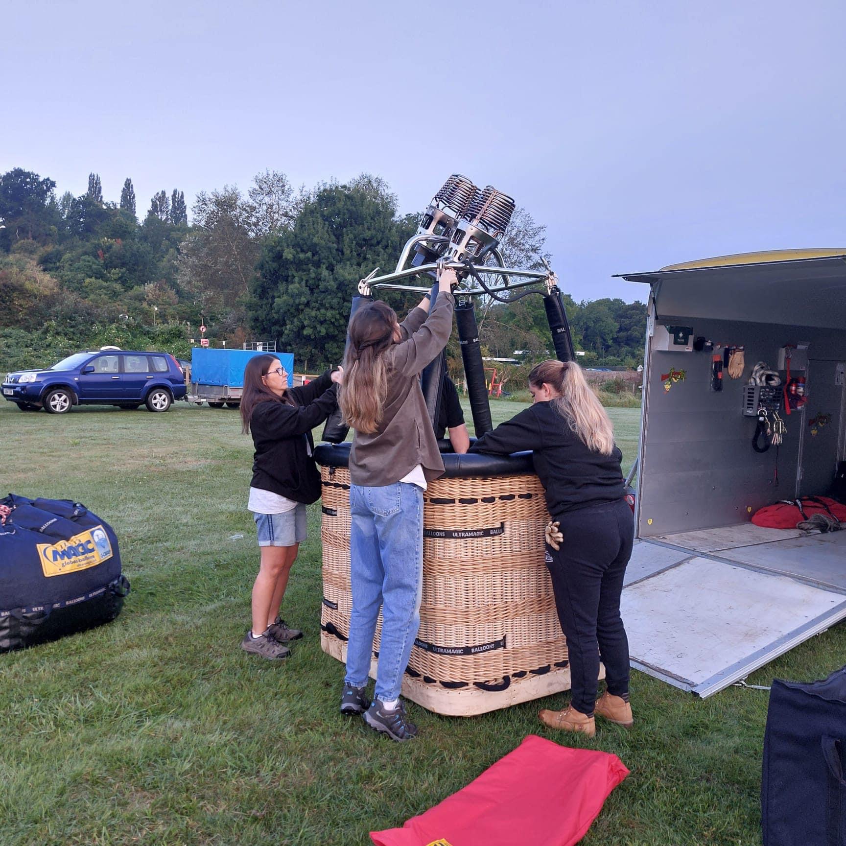 - The ground crew helps unpack and prepare the balloon for flight. This includes laying out the balloon envelope, assembling the basket, and attaching burners and fuel tanks.