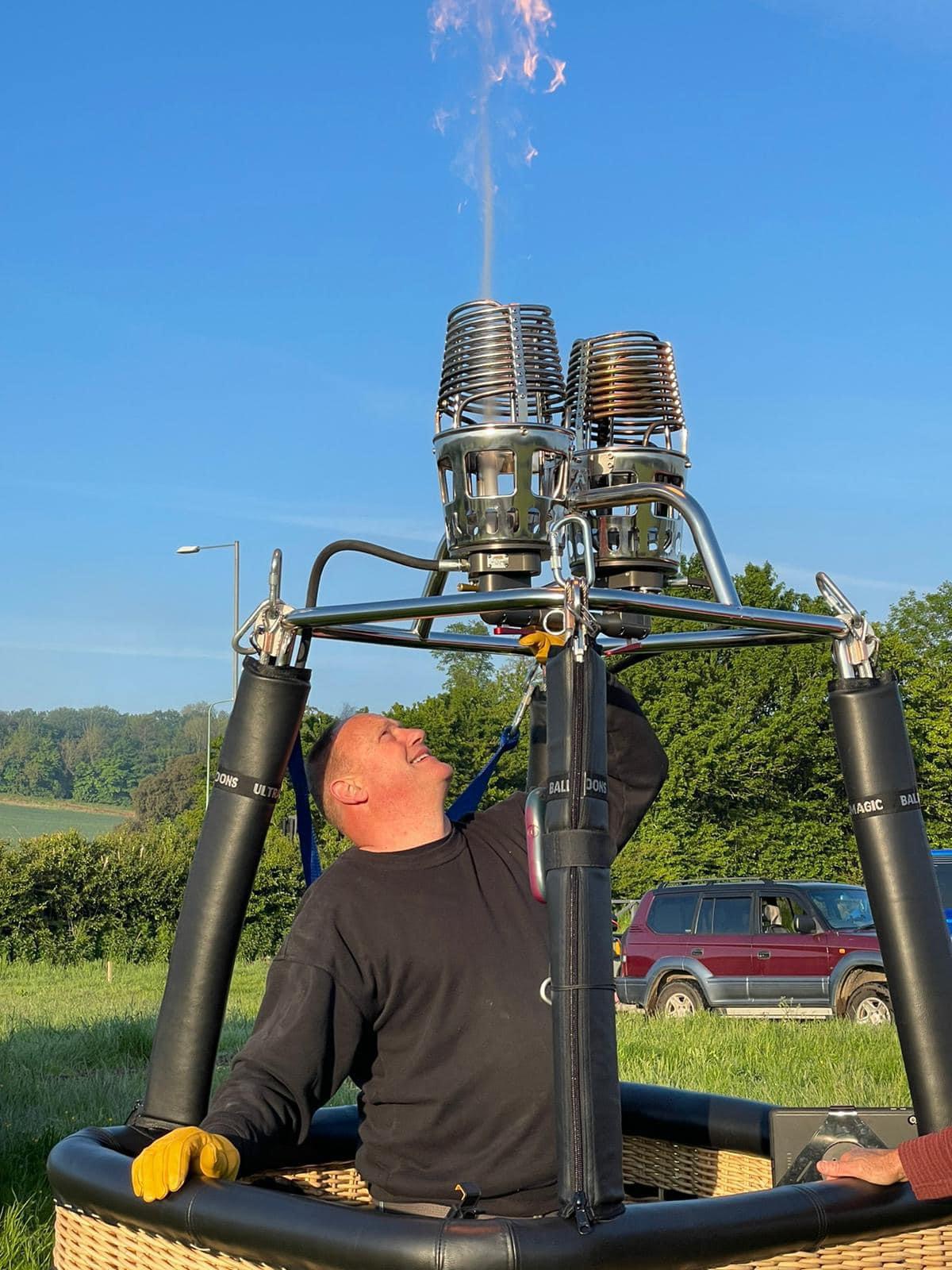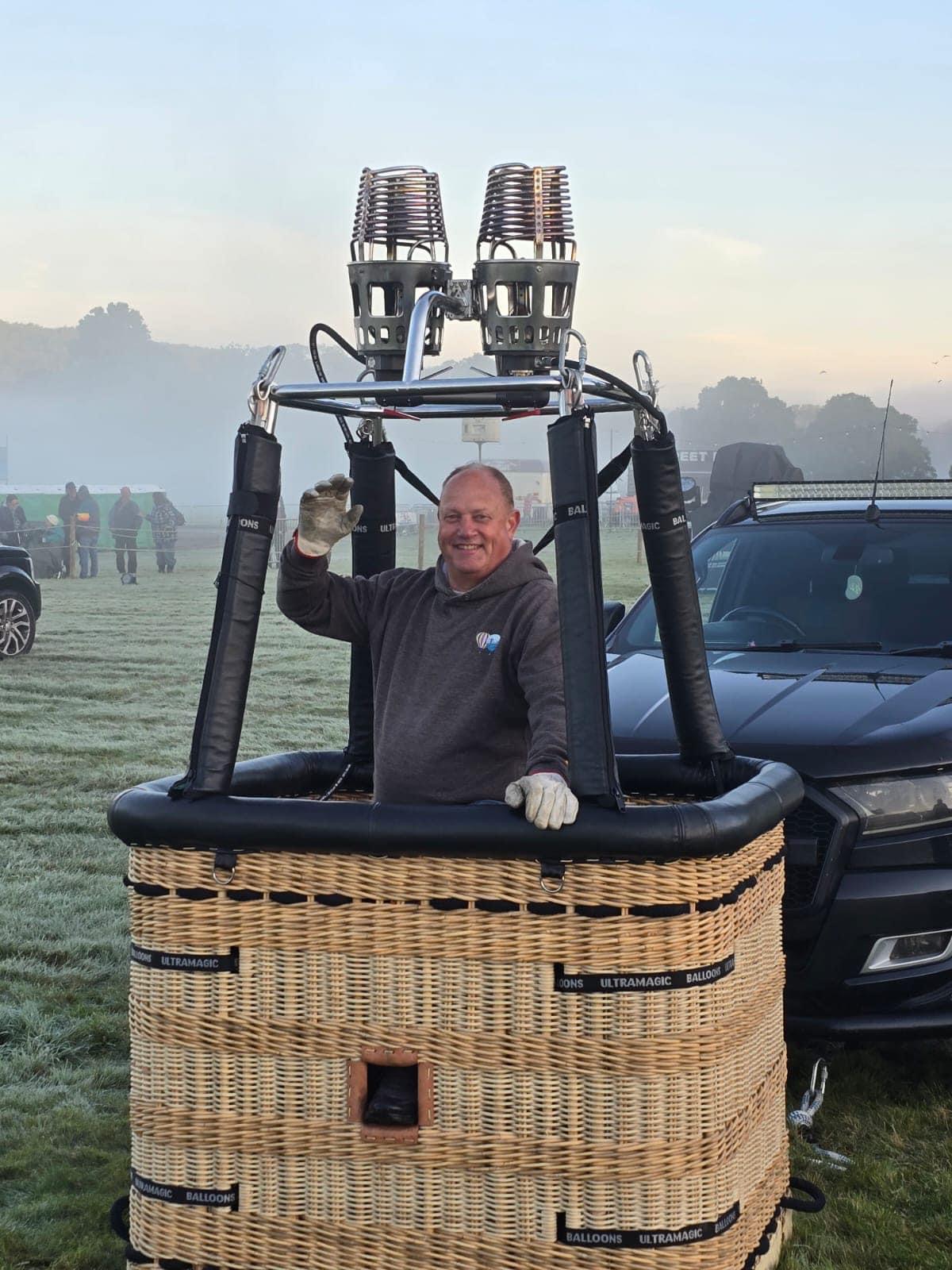 Pictured here is Bath Hot Air Balloon Clubs experienced Pilot Jerry Davis. Also the founder of Bath Hot Air Balloon Club and owner of Snake Meadows.