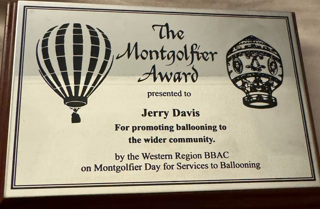 Thursday 21st November , the Western Region BBAC held the Montgolfier Dinner celebrating the achievements of the ballooning community, with Jerry Davis, founder of The Bath Hot Air Balloon Club, receiving an award for his work in promoting hot air ballooning to the local community.